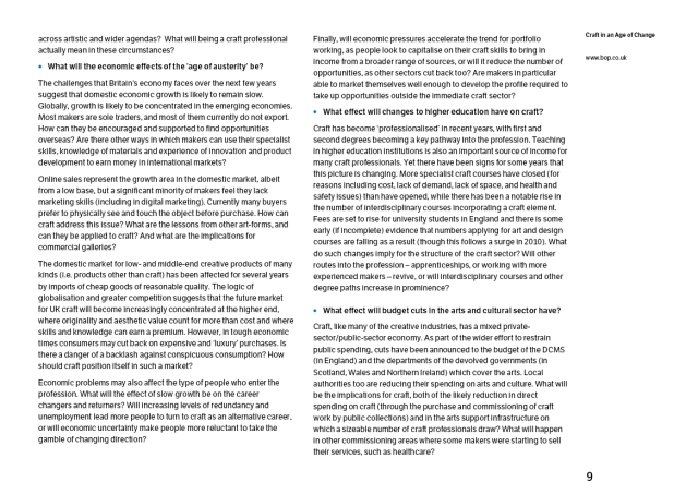 The Crafts Council in the UK recently launched their Craft in an Age of Change report. Here is a page of the typical questions it addresses (click to enlarge):