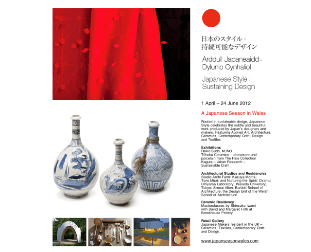 You’re invited to join Reiko Sudo and Dr Emma Neuberg among several preminent British slow textiles practitioners at the opening event of the fabulous new exhibition, Japanese Style: Sustaining Design at the Ruthin Craft Centre in Wales: japanseasonwales – Home.