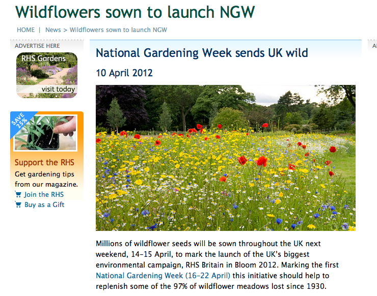 To start it off, the first ever Royal Horticultural Society’s National Gardening Week (that’s this week!) has been giving away thousands of wildflower seeds for everyone to sow to help replenish some of the 97% of wildflower meadows lost in the UK since 1930.