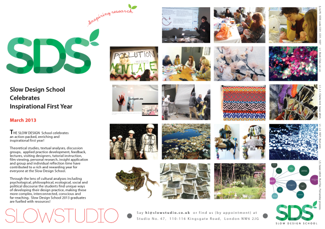 The Slow Design School has had an amazing first year! The breadth and depth of work undertaken is exemplary with funding applications, publication and PhD candidacy now underway. Watch this space for details of our exciting graduate projects from Zoe Burt’s Grow Your Own Fashion to Sarah Marais’s Making & Flourishing: Crafts Practice as a Means of Building Community Assets, Health & Well-being.