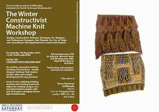 We’re excited to be celebrating national SMALL BUSINESS SATURDAY with a great, one-off Couture Knitwear Class, THE WINTER CONSTRUCTIVIST MACHINE KNIT WORKSHOP, with amazing knitted textile designer Egle V and lots of great British designers!