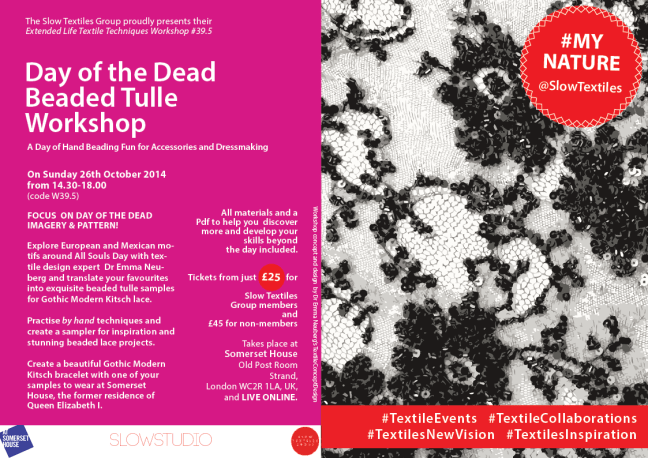 Textiles TV tickets are available for this workshop if you’re not able to be in the London studio and or prefer to participate from home (£25 for Slow Textiles Group Members). We use Google+ Hangout which is easy to use (all you need is a Google+ account). Alternatively, come to the London studio to gain the full experience of a textile design studio, personal attention, group experience and learning, Slow Textiles Group handouts and realia, new work made with Slow Textiles Group materials, networking, refreshments and fun from just £45 (Slow Textiles Group Members’ price)!
