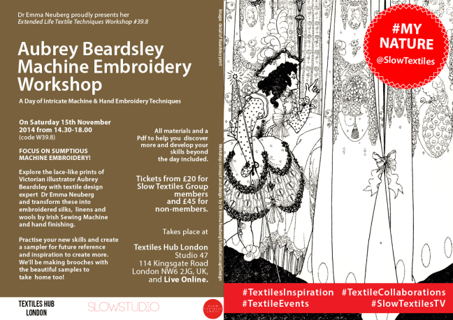 Slow Textiles TV tickets are available for this workshop if you’re not able to be in the London studio and or prefer to participate from home (from £20 for Slow Textiles Group Members). We use Google+ Hangout which is easy to use (all you need is a Google+ account). Alternatively, come to the London studio to gain the full experience of a textile design studio, personal attention, group experience and learning, Slow Textiles Group handouts and realia, new work made with Slow Textiles Group materials, networking, refreshments and fun from just £40 (Slow Textiles Group Members’ price)!