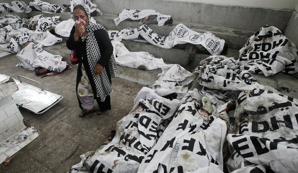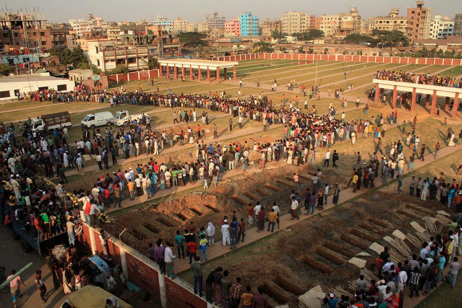 Relatives prepare to bury loved ones from the Tazreen Fashions Factory tragedy on November 27th 2012. Further information on the fashion labels found in the embers here.